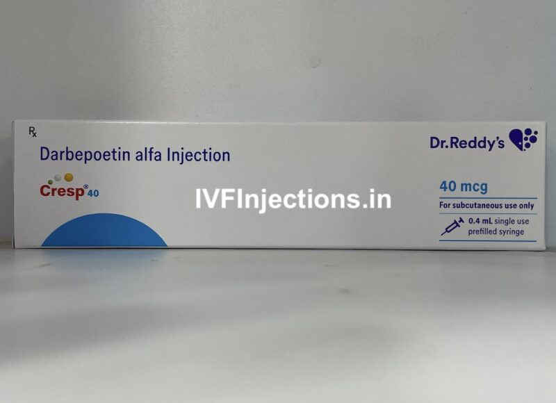 Cresp 40 mcg injection is a brand of darbepoetin alfa, used to treat anemia caused by chronic kidney disease in patients on dialysis. Anemia is a condition causing a lack of red blood cells, which leads to fatigue and weakness. For dialysis patients, managing anemia is crucial. Cresp 40 mcg helps stimulate the production of red blood cells, reducing the need for blood transfusions and enhancing the quality of life for those undergoing dialysis. By addressing anemia, patients often feel more energetic and experience improved overall health. Buy Cresp 40 mcg in Delhi, Noida, Gurugram, Faridabad at IVFInjection.in