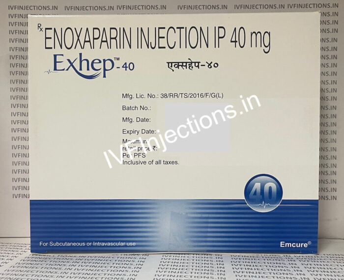 Exhep 40 Injection is sometimes used during dialysis, after and before surgery, or for severe chest pain (angina), and in some cases, it is used during the period of Pregnancy. Exhep 40 Injection also helps to prevent the growth of existing blood clots. It can also be used to reduce the risk of blood clot formation caused due to prolonged periods of immobility or by cancer therapy.