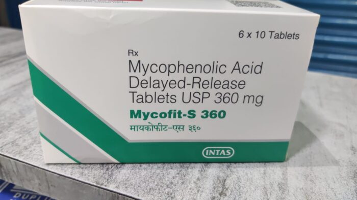 Mycofit S 360 mg Tablet belongs to a group of medicines called immunosuppressants. It is used with other medicines to prevent your body from rejecting an organ (such as a kidney, heart, or liver) after a transplant. It works by weakening your body’s immune system, so it does not attack the transplanted organ. It contains the active ingredient Mycophenolate acid 360 mg with delayed release.