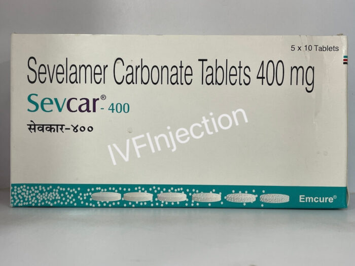 Sevcar 400 mg is a medicine used to control high phosphate levels in the blood in patients with chronic kidney disease, especially those on dialysis. High phosphate levels can lead to serious complications like weak bones, cardiovascular problems, and itching. Sevelamer the active ingredient in this medication works by binding phosphate in the gut, preventing it from being absorbed into the bloodstream.