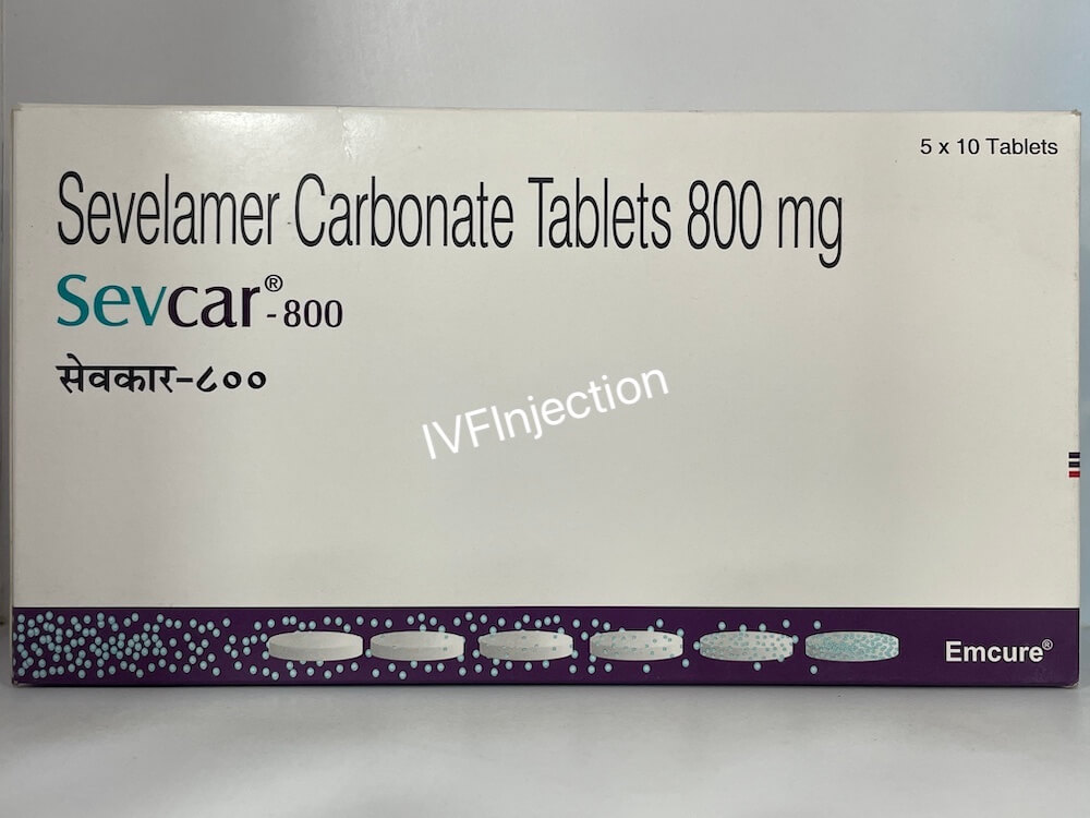 Sevcar 800 mg is an oral medicine used to control high phosphate levels in the blood in patients with chronic kidney disease, especially those on dialysis. High phosphate levels can lead to serious complications like weak bones and cardiovascular problems. Sevelamer the active ingredient in this medication works by binding phosphate in the gut, preventing it from being absorbed into the bloodstream.